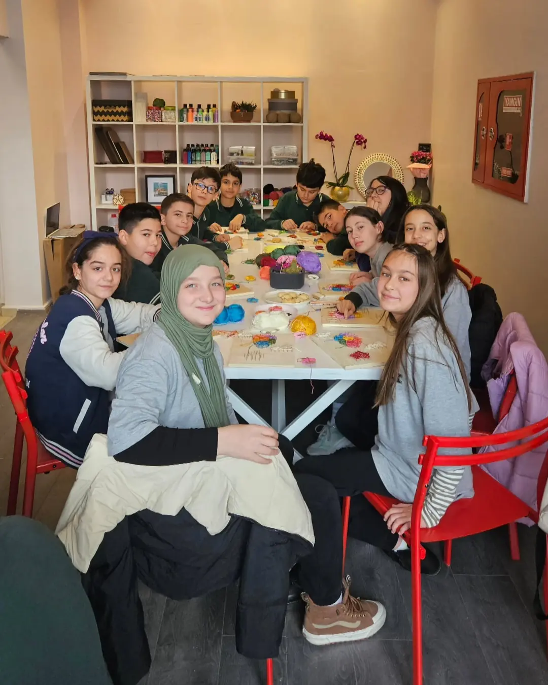 Öğrencilerimiz sanatsal bir çalışma gerçekleştirirken yeni bir deneyim yaşarlar.