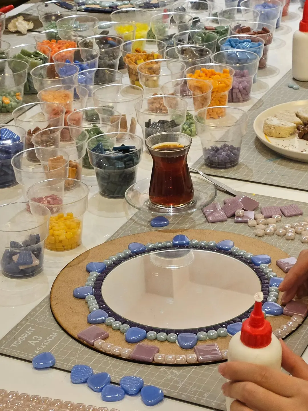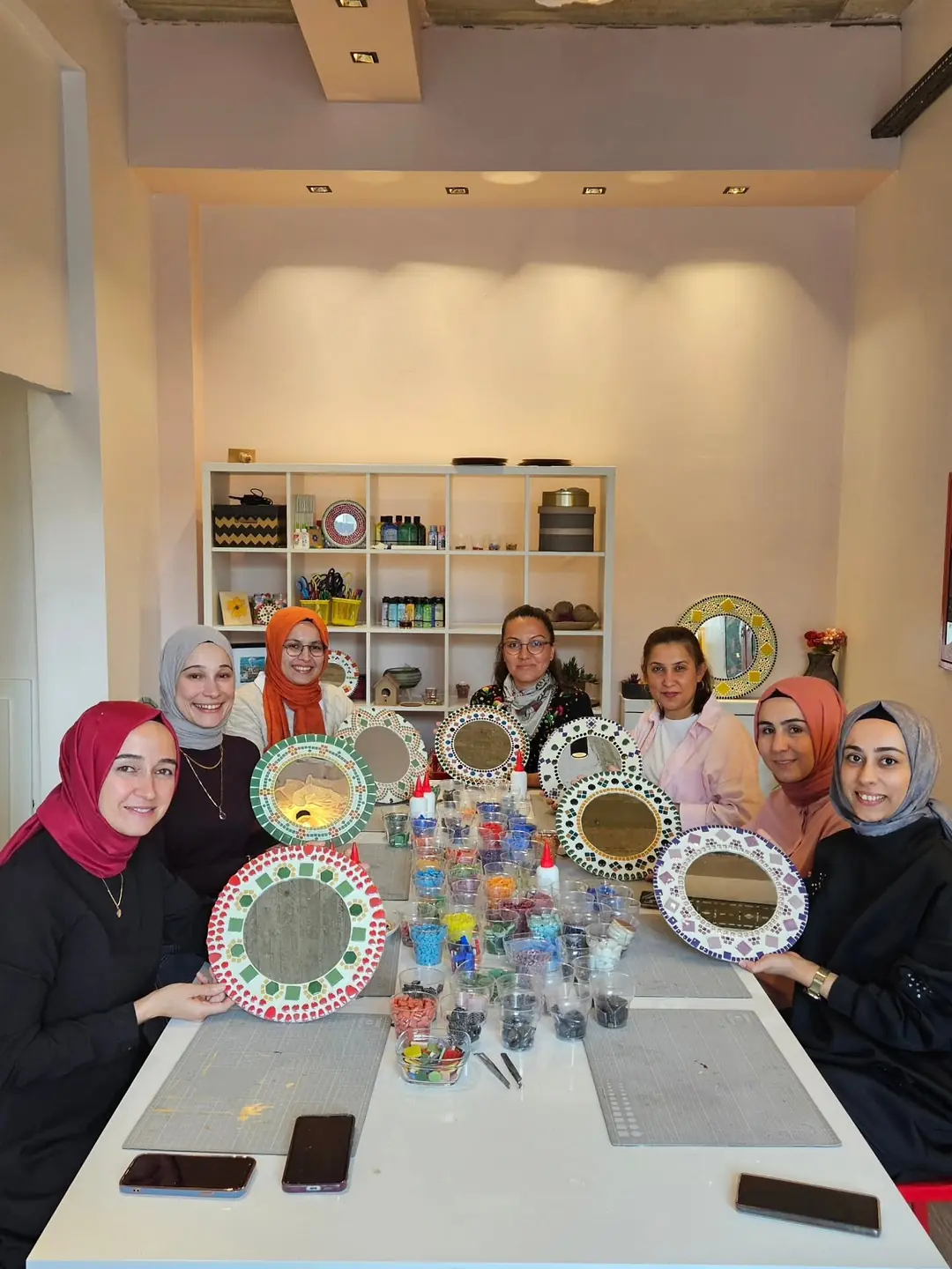 Mozaik ayna, saksı, punch ve tablo boyama gibi geniş atölye seçenekleri.
